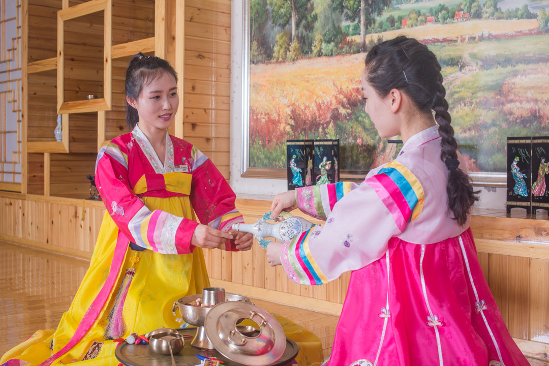 曲江平壤銀畔館位于美麗的曲江南湖畔,內(nèi)部裝修華貴、高雅、舒適,具有濃厚的朝鮮傳統(tǒng)民族風(fēng)格。服務(wù)人員均為清一色的妙齡朝鮮大學(xué)畢業(yè)生,她們在朝鮮都是經(jīng)過培訓(xùn),通過層層選拔才來到中國的,個個精通歌舞,會講中文。